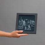 Balti stalo padėkliukai su Vilniaus senamiesčio piešiniu – tikras meilės laiškas miestui ir jo legendoms. Juos puošia dizainerės Julijos Janus kurtas „Vilniaus meilės žemėlapis“, kuriame atpažinsi Valdovų rūmus, Vilniaus katedrą, Aušros vartus, Šv. Onos bažnyčią ir kitus istorinius simbolius. Ypatinga detalė – optinė iliuzija, kur Jėzuitų bažnyčios bokštai tampa Barboros Radvilaitės karūna.
