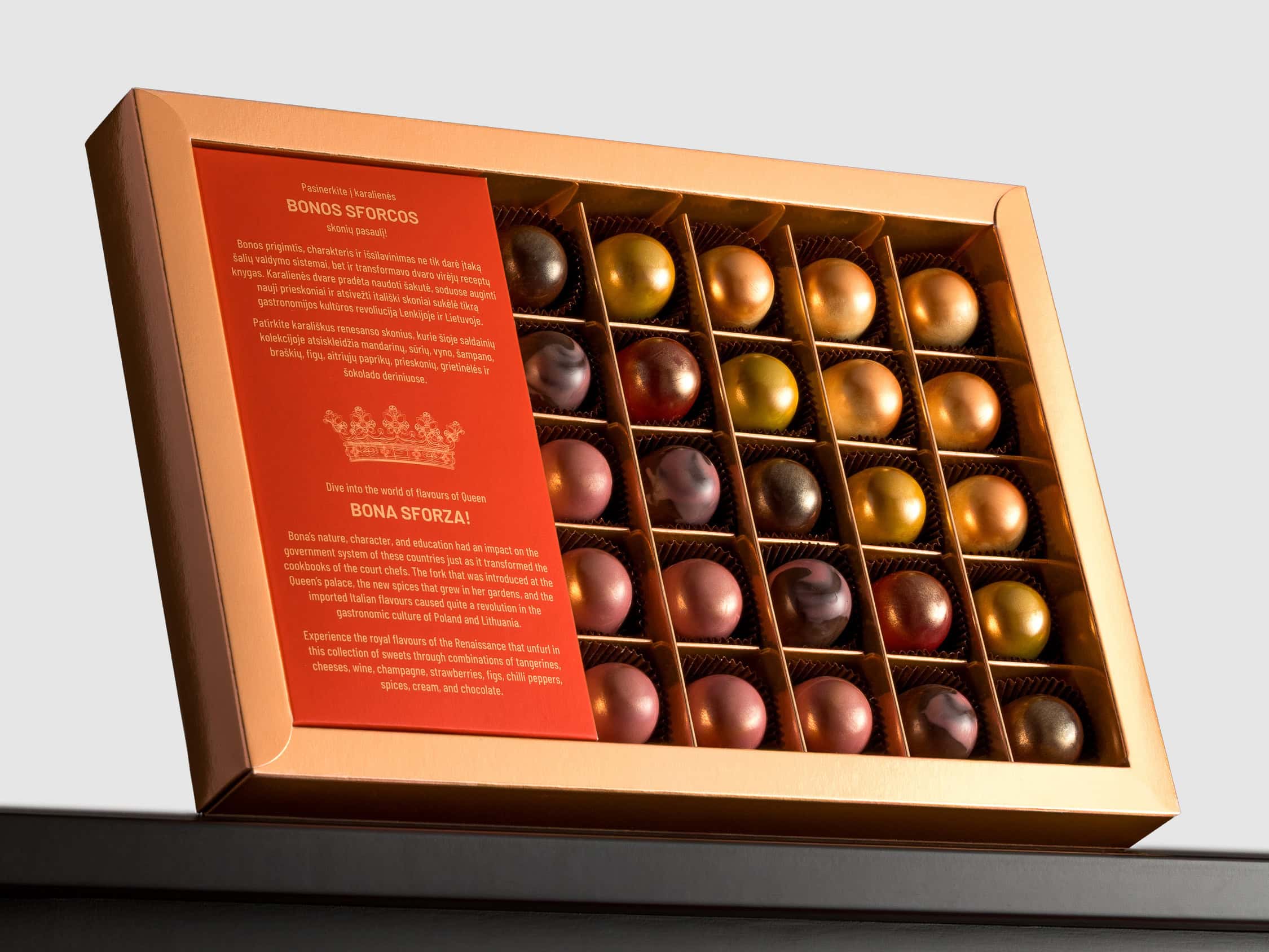 Tada laikas spaustuvei, gamybai, pakavimui, fotosesijai. Ir galiausiai– saldainiai. Jie atsiranda Rūtos parduotuvėse. Jie įtraukiami į Slaptos Meilės kolekciją. Jie atsiduria tavo delne. Ir atrodo taip, lyg būtų paveldėję skonio liniją iš karališkos šeimos.